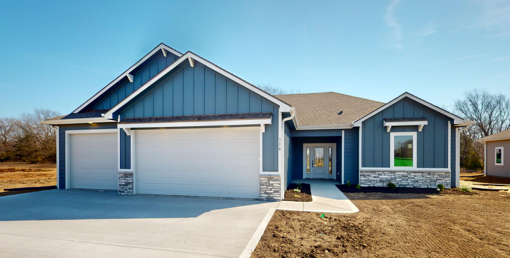 Find your new home, the Bridgeport I. Located on Lot 9 in the new Heritage Addition. This plan has a slab foundation featuring a serene design palette with matte black finishes throughout the home. Exterior Elevation #1. Contact us today to make this one yours!