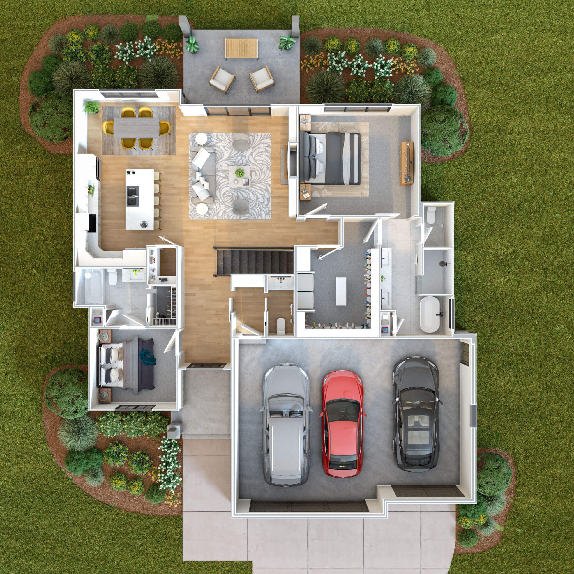 A client favorite has recently been revised to include more to love! Choose our Adalyn plan. Featuring 2 bedrooms on the main level, each with their own private bath, and a half bath located off the mudroom. Laundry has also never been easier, now located in the primary bedroom closet. Enjoy the desirable kitchen layout with an optimal amount of prep space and kitchen island.