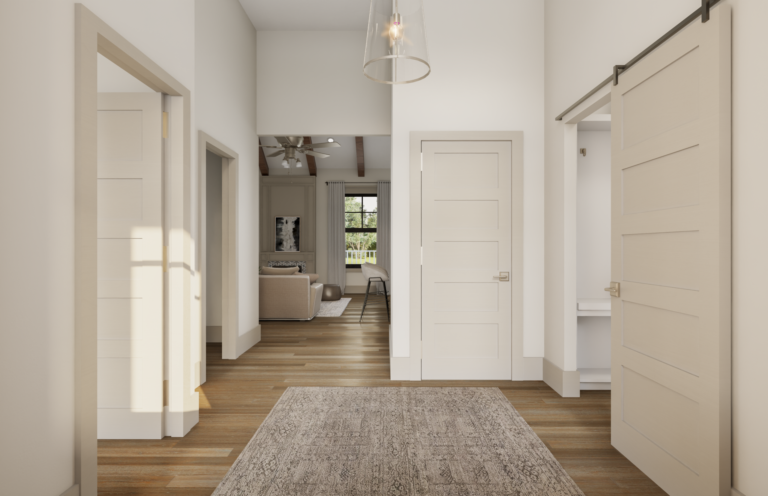 Introducing the Bailey plan with 2,041 finished square feet, this home blends functional design with stylish details throughout. The spacious great room features a stunning vaulted ceiling with beam accents, creating an open and inviting focal point for everyday living and entertaining. The kitchen is complemented by a walk-in pantry and flows seamlessly into the main living spaces.